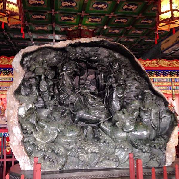 八仙过海景区位于蓬莱市北部的黄海之滨,有一座八仙桥将景区和海滨路相连。这里是神话传说中八仙过海的地方,景区内以“八仙过海”的传说为主题,建有仿古亭阁与园林,你可以在此拜仙祈福、感受浓郁的道教文化氛围,也可以随处都能欣赏海景。景区内有八仙桥、仙源楼、望瀛楼、钟鼓楼、八仙祠、会仙阁、拜仙坛等建筑。八仙桥的前后各有一座牌坊,第一座牌坊的上额正面与背面分别刻有“八仙过海口”和“人间仙境”九个大字,均为北宋大文豪苏东坡的手迹。游览指南走过八仙桥会看到仙源楼,这是进出景区的门楼,楼上方悬挂的匾额刻有“仙源”两个大字,据说为唐太宗李世民题写。楼后有一座拱月形影壁,称为“八仙壁”,正中有六十四块白玉方石连接而成的浮雕,描绘的是八仙过海的故事,栩栩如生。景区内有一大一小两个湖泊,称为“瑶池”。从八仙壁左右两侧可沿着环岛观光路步行游览,一路上可见到各种假山奇石。湖边有个海豹岛,可以与海豹零距离接触。景区中部有座八仙祠,是一个独立的院落建筑,里面可以上香祈福,八仙祠左右还各有一配殿,分别是祈福殿和财神殿。望瀛楼是建于小瑶池中的巍峨建筑,它的一、二层是中华传统艺术博物馆,可以欣赏到各种珍奇玉器、瓷器等艺术品。其中有一幅用1888块翡翠、象牙、玉石精雕而成、建国以来很大的漆雕镶嵌壁画《群仙祝寿图》,堪称传世之宝。此外还有曾国藩、红学泰斗冯其庸等书写的楹联等珍贵藏品。会仙阁位于大瑶池中,是一栋有着地下一层和地上五层的仿古塔阁建筑,是景区的标志性建筑,阁中供奉着道教非常有代表性的七十二位神仙。登上阁顶极目远眺,碧海蓝天尽收眼底。拜仙坛是景区的最后一个景观,可在“八仙过海”的雕像前拜仙祈福,也可与“八仙过海处”石碑合影留念。