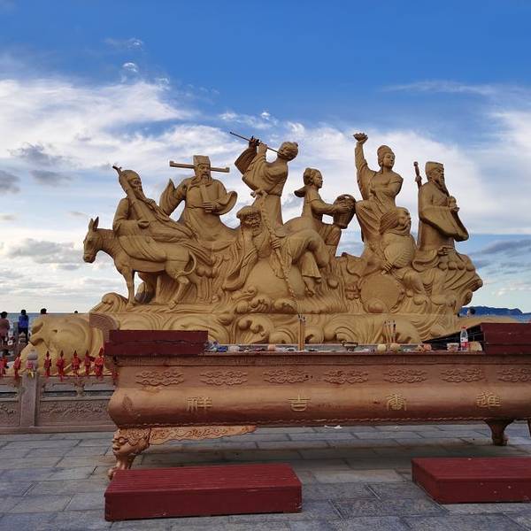 游览建于海上的仿古亭阁,在传说中八仙过海的地方拜仙祈福。