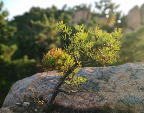 6.8分吧,比较适合清心清欲,自然山区景色,久居城市喧闹氛围的人儿可到此游览静心,门票15一位不算昂贵。海拔不算高,最高200-300米之间。鹤山遇真宫里供奉丘处机,太上老君,玉皇大帝等神仙,信奉者可参拜。滚龙洞还算有意思,趣味性不错,寓意也很不错。一棵巨石裂缝中间的小树苗,正在顽强的生长(图九)。自然景色很不错,适合慢慢游览,慢慢欣赏。