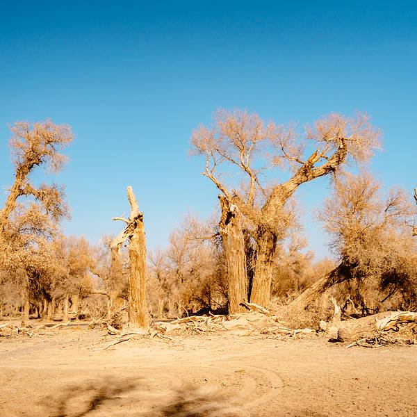 胡杨林,绝对是来新疆不可错过的景观。“胡杨生而千年不死,死而千年不倒,倒而千年不烂”胡杨林,绝对是来新疆不可错过的景观。我国有百分之九十的胡杨林长在这里,而其中百分九十都在 塔里 木盆地。