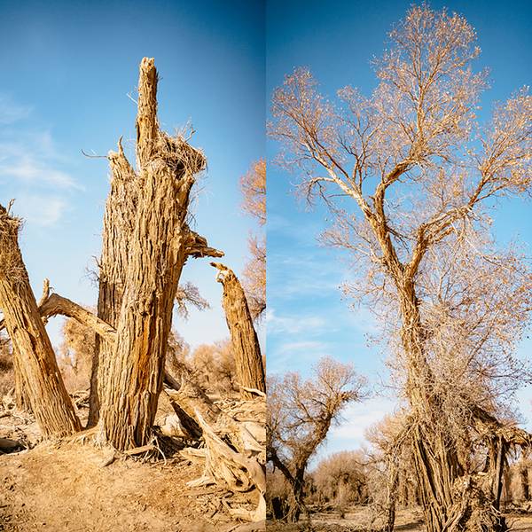 “胡杨生而千年不死,死而千年不倒,倒而千年不烂”。这种生长在沙漠中的唯一乔木有着极其顽强的生命力,也成为了大漠中的一个奇观。如同我们沿途经过的景区一样,这里的冬季同样游客寥寥,胡杨林刚刚经历它最美的时节,因为气候极度干燥,所以落叶没有腐烂,只有等到一场雪的来临,它才会消失不见,随后胡杨会开始一个新的轮回。千姿百态的胡杨树饱受大自然的狂虐却依旧挺拔,这群孤独的巨人傲然于世,无论生死都不枉这样轰轰烈烈的存在过。一对比,之前我们去过的 泽普 金胡杨景区在 塔里 木的胡杨林面前,真的,不值一提,人工的痕迹过重了一些。 展开