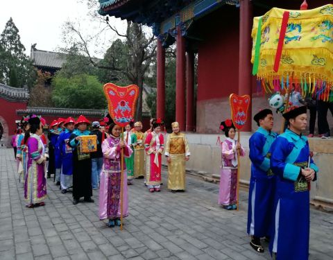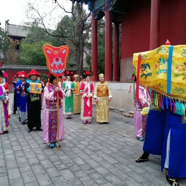 从开封驱车2个多小时到达嘉应观。这里是清雍正年间建造的建筑,仿造故宫,蓝色琉璃瓦,非常漂亮。值得多点时间慢慢欣赏。到达时有2场古装演出,很精彩。