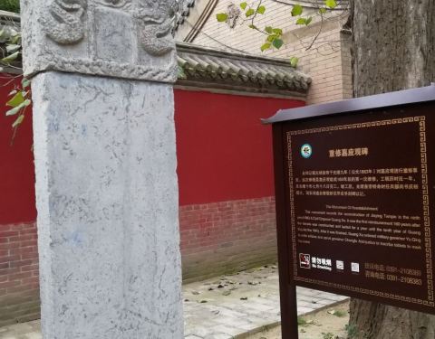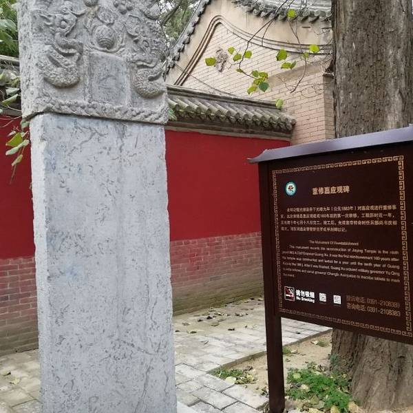 焦作嘉应观,是清代雍正年间建筑,鲜明的清代建筑特色,观内面积比较大,有雍正的御碑亭,也有治理黄...焦作嘉应观,是清代雍正年间建筑,鲜明的清代建筑特色,观内面积比较大,有雍正的御碑亭,也有治理黄河水患的历史人物介绍,也有钟楼,鼓楼的建筑,这里也是治理黄河流域的办公室,有傅作义将军的办公室!