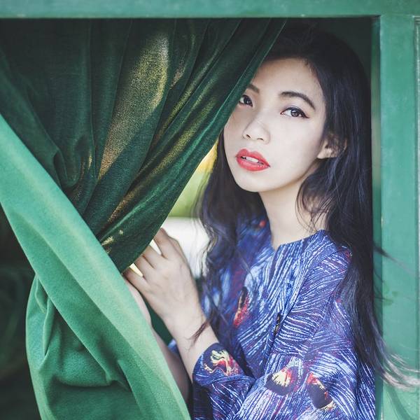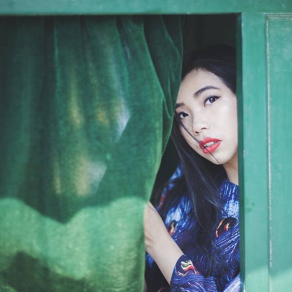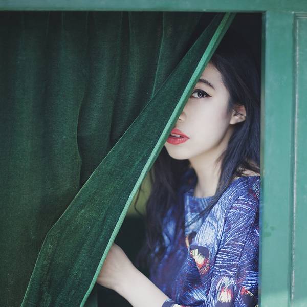 在嘉应观的院子里发现了一顶轿子,在轿子的窗口摆造型,拍得非常开心