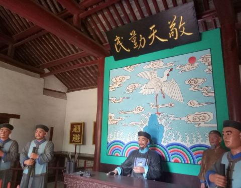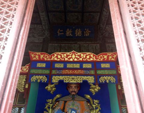 在嘉应观的院子里发现了一顶轿子,在轿子的窗口摆造型,拍得非常开心今天早上先去嘉应观,这是当时的“黄河治理办公室”