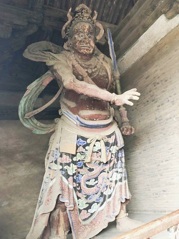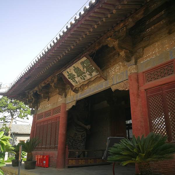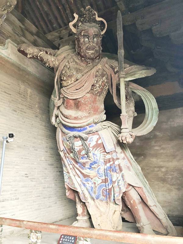 山门当心间上方檐下悬挂“独乐寺”三字匾额,相传为明朝严嵩手书。门道两旁各立泥塑力士像一尊,为辽代所塑。在哼哈二将的身后的后两梢间,是清代绘制的四大天王壁画。这可是“四大天王”寓意“风调雨顺”的地方。下起了小雨,联票中后面还有几个景点,便不舍地出来了。