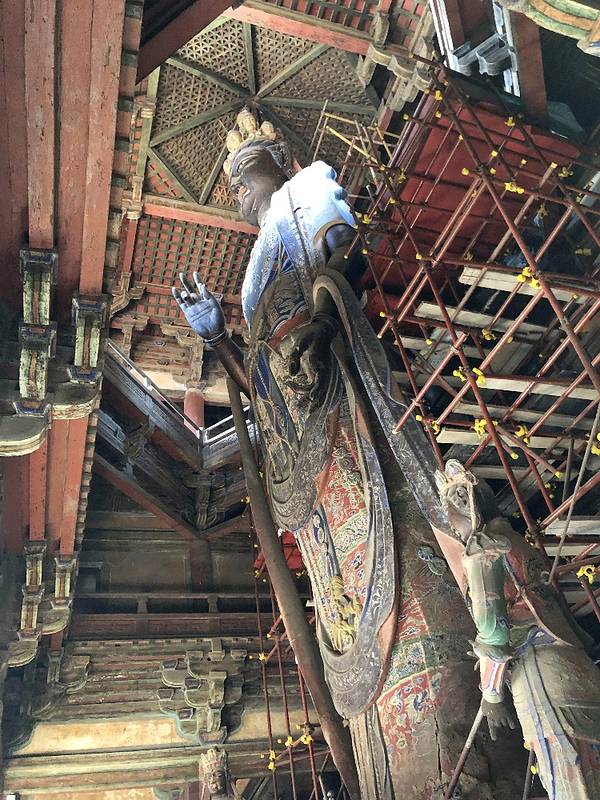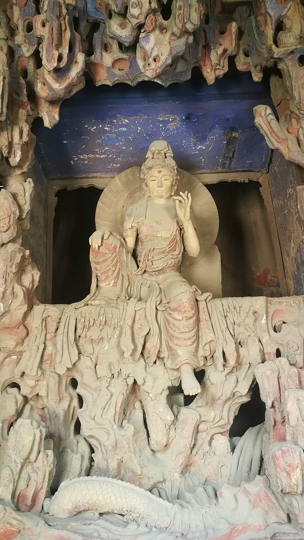 由于殿内空间有限,要高高仰头才可观看,以至于观音像冠顶置十个小佛头,很难全部看到。非常巧妙的设计2024.10.18