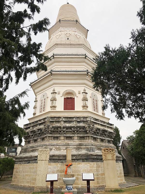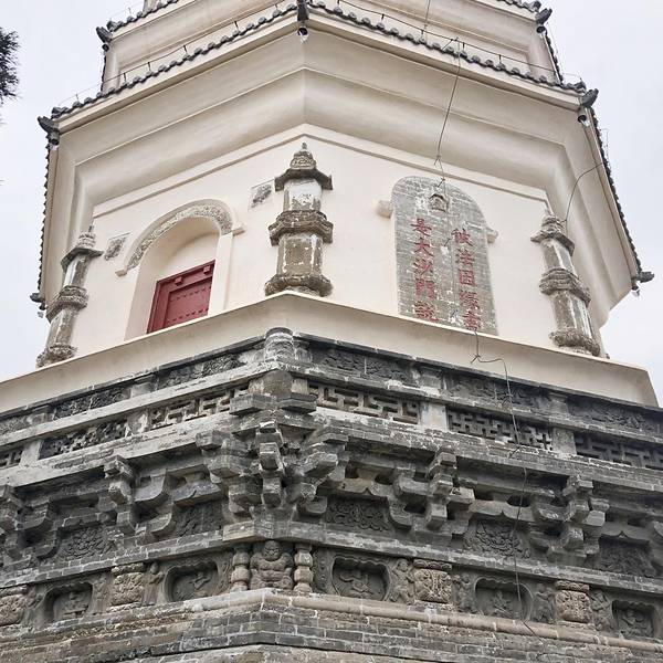 原本担心4:30前关门的几个景点一下午紧张,谁想除了独乐寺其它就没什么吸引人的了。下着雨更是游得快,看时间还早,女儿喜欢鼓楼广场,说这时的仿古建筑四周没有更高的现代建筑,置身其中更有感觉。我们便在广场的亭子里坐下,后来发发现瑞幸咖啡里面环境很好,靠窗的吧台座观景不错,便在此享受我们的下午茶时光。最后游览了白塔,走近发现很漂亮的白塔,蓟州白塔寺是早期独乐寺的一个组成部分,重建于辽清宁四年。白色塔身通高30.6米,平面为八角形,由须弥座、塔身、覆钵、十三天相轮和塔刹五部分组成。白塔的塔基下部砌花岗石条,上部筑仿木砖雕须弥座,其壶门内浮雕舞乐伎,刻工精细,目前看着很是清晰,不知是那年修缮的了。