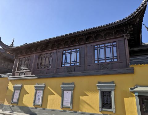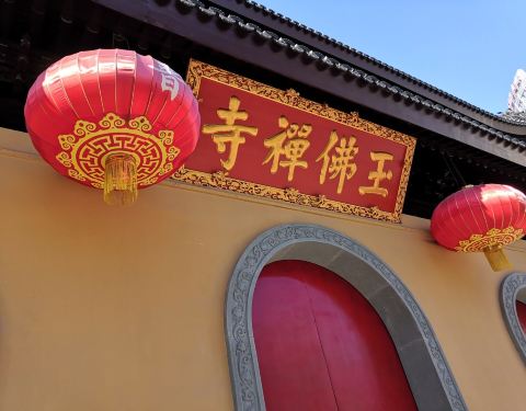 玉佛禅寺也称玉佛寺,地处繁华路段,是闹市中的一片净土。此寺始建于清光绪8年(1882年),与龙华寺、静安寺同为沪上名刹。现在的玉佛寺,分为前院和后院两大部分。前院即玉佛禅寺原来的寺址,中轴线上依次为大照壁、天 王殿、大雄宝殿、般若丈室(楼上为玉佛楼和藏经楼),为仿宋宫殿式建筑群;后院是一座多功能的觉群大楼。 寺内有文物室,藏有北魏、唐、宋、元、明、清历代珍贵文物。玉佛寺较出名的是清末普陀山慧根法师从缅甸请回的两尊玉佛,其实慧根法师一共请回5尊大小不一的玉佛,在返回普陀山的路上把其中的两尊留在了上海。一尊在玉佛楼内,是高1.92米的释迦牟尼坐佛像,佛身上装贴的金箔和镶嵌的宝石光彩夺目,为“镇寺之宝”。在玉佛楼的天花板顶,还塑有镏金佛像500尊,进玉佛楼参观需要另付10元门票。另一尊在寺庙西侧的卧佛堂内,是长96厘米的释迦牟尼卧佛像,按照释迦牟尼80岁圆寂时的摸样打造,侧身而卧,右手支头,神态安详。卧佛的对面,近代由新加坡信徒捐赠,新增了一座长约4米的玉制卧佛。此外,值得一看的还有在般若丈室前面和东西回廊墙壁、大雄宝殿两侧外围墙壁上,分别镶嵌的明华亭董其昌楷书《四十二章经》和行书《释迦如来成道记》墨刻、唐宋元明清名画家绘观音菩萨三十二应身宝像刻石、释迦牟尼八相成道记画像石刻、唐贯休绘十六罗汉像石刻。玉佛寺香火旺盛,每逢初一、十五香客不断。较出名的是大年初一烧香,有的香客大年三十晚上就在寺庙门口等候,盼望烧到香,许下的愿望能更灵验地实现。