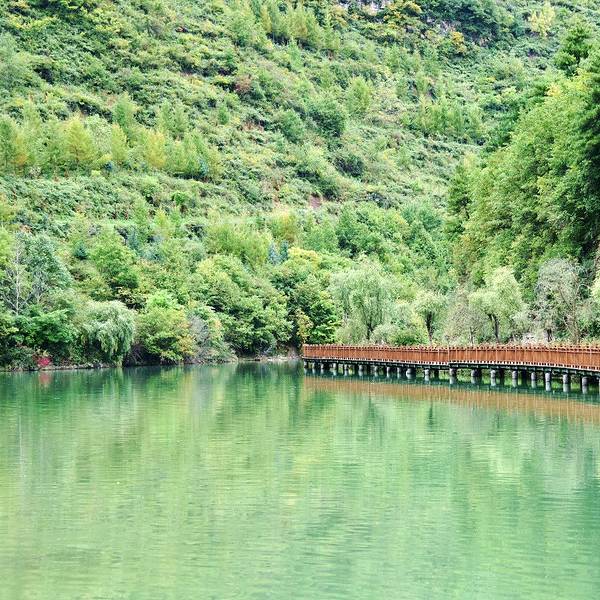 湖水颜色多变奇幻,还有老树盘旋水中,人称“小九寨”。