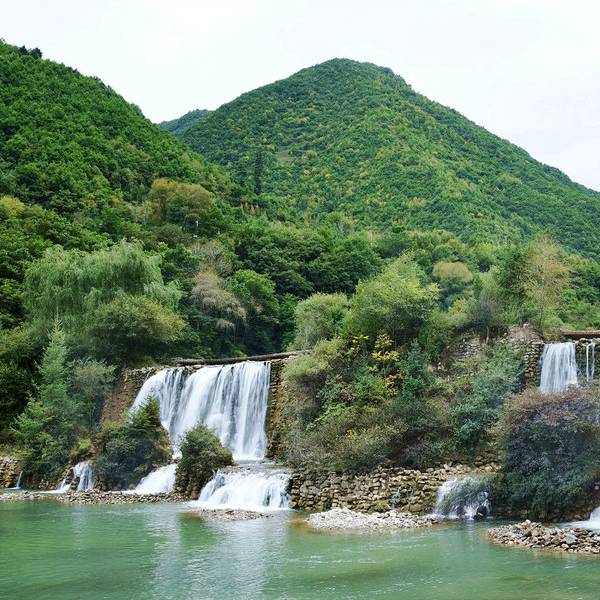 官鹅沟大景区位于甘肃陇南宕昌县,是一条长约三十多公里的峡谷。峡谷里有二十多个颜色深浅不一的碧绿湖泊,湖水清澈,还有老树等盘桓水中,是摄影家眼中的“小九寨”。峡谷两侧山势陡峭,山崖上有很多瀑布飞流直下,景观众多。 游览官鹅沟大景区的好季节是夏天,峡谷里气候凉爽,所以景区也是甘肃知名的避暑胜地。春秋前来也可以,春天有杜鹃花可以看,秋天则有山间的红叶。每到冬天官鹅沟大景区内大部分封冻,不太适合前来游玩。官鹅沟大景区靠近宕昌县城,景区大门(售票处)距离县城4公里,经过售票处即进入景区,官鹅沟大景区大致分为外景区、主景区和内部森林共三个区域。 外景区从售票处进入起,一直到通天门服务中心(也叫通天门停车场),这一段有12公里的路程,首先会看到这里的古城堡遗址和由奇特山势构成的官鹅卧佛,这一段步行的路边分布着阴平湖、公主湖、珍珠湖等十几个湖泊,每个都碧绿清澈,路边还有一个藏族聚居的鹿仁村,可以参观藏式民居的村落。另外还有鹿仁廊桥、通天峡、通天栈道等景点可以参观。但若要参观这些景点则需步行这12公里,大约需要3个小时到达通天门处,体力消耗很大。很多游客会舍弃这一部分景点,直接坐车从公路来到通天门景区去游览主景区。 主景区从通天门服务中心开始到官鹅天瀑景点处,也是大多数游客主要游玩的地带,主景区长度大约两三公里,只能步行,单程约需1小时左右,这一段以瀑布和峡谷风光为主,有五谷峡、五瀑峡、地书峡等众多形态各异的峡谷奇观,还有龙涎瀑、九叠瀑、虎口瀑等大小长短不一的瀑布点缀其间,其中官鹅天瀑又叫官鹅飞天大瀑布,瀑布高几十米,水量很大,非常壮观。 大部分游客走到瀑布处即为游玩结束,再原路步行返回通天门离开官鹅沟大景区,但想要深度游玩或喜爱徒步的游客会选择继续深入进入内侧原始森林景区,这一段路程较长,且要爬升较高,只适合体力较好的游客或徒步爱好者前往,内有原始森林、高山草甸等景观,风景优美。