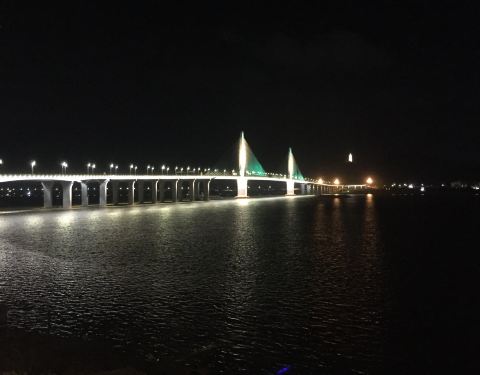 兴致缺缺的我并没有停留,沿着河边看着夜景一路朝着观景台方向走去,听说那里是看夜景的绝佳去处。