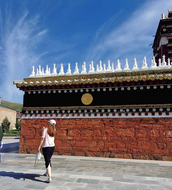 ...参观,没有进入,白色的白塔、红金相间的各种佛阁,在墙壁边拍照打卡,再穿的粉嫩一点,真的超级出片第1⃣站 安多合作米拉日巴佛阁