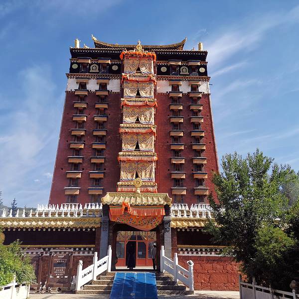 这里是要收费四十元的,佛阁共9层,高40余米,外观融合了藏式碉楼与佛殿的建筑风格,墙体以红、白、黄三色为主,檐角悬挂的经铃随风作响,殿外经幡环绕,尽显藏地宗教建筑的庄严与厚重。内部供奉着米拉日巴、宗喀...这里是要收费四十元的,佛阁共9层,高40余米,外观融合了藏式碉楼与佛殿的建筑风格,墙体以红、白、黄三色为主,檐角悬挂的经铃随风作响,殿外经幡环绕,尽显藏地宗教建筑的庄严与厚重。内部供奉着米拉日巴、宗喀巴等3700余尊佛像,壁画遍布每一层廊道,内容涵盖藏传佛教历史、教义故事与生活场景,色彩艳丽、细节繁复,被誉为“安多藏区的壁画博物馆”,其中米拉日巴大师的生平壁画尤为珍贵。