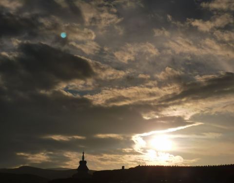 米拉日巴佛阁位于城北小山的合作寺中。合作寺游客不多,建筑很新,金顶在阳光下熠熠生辉。拾级而上,视野愈加开阔,远处的九层楼就是米拉日巴佛阁。米拉日巴佛阁始建于清乾隆四十二年,原建筑已毁,现在的是1992年重建的。佛阁外墙有铜制的玛尼经纶100多个,围墙顶部建有小佛塔1500多个。一个个虔诚的身影围绕着外墙不知疲倦地行走朝拜。佛阁共九层,每一层都有不同的主题,每一层都代表了藏传佛教的一个时代或一个支派,阁内精美的壁画和法器让人惊叹。发现到了第八层就上不去了,后来才听说屋顶正中央绘制曼陀罗的藻井就是第九层——喜乐金刚坛城。合作寺内的八座白塔拍照煞是好看。登至寺内最高的大殿,可以远眺城市的全貌。寺院里还养了几头藏香猪。屋檐上的小花也明艳可爱。回兰州的路上,遇到一阵急雨,雨后看到了双层彩虹,给这趟甘南之行画上完美的句号。甘南,我想我还会再来的! 展开
