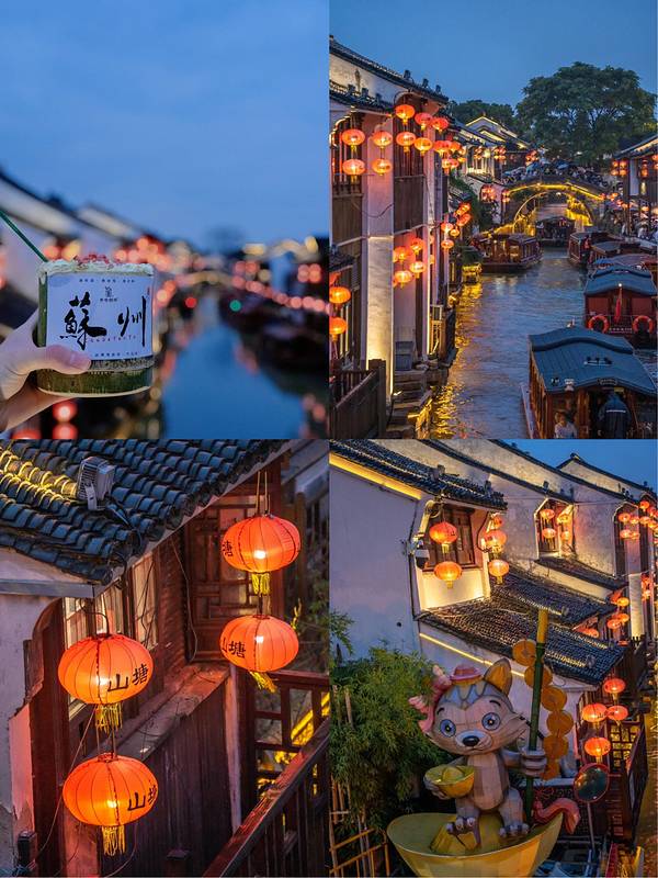4.七里山塘:夜晚的山塘街充满了浪漫和文化,非常适合拍照。你还可以去茶馆喝一杯香茶,听一场评弹,感受老苏州的传统韵味。
