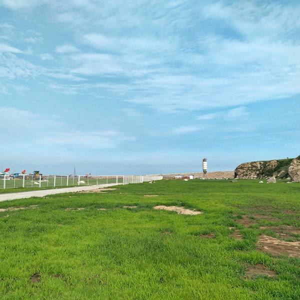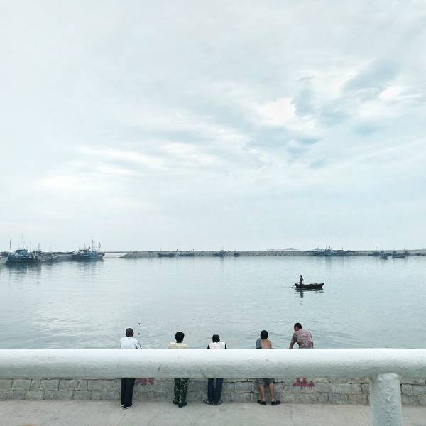 从兴城坐船来到觉华岛,一进码头就感受到了清新的空气,绿草蓝天。内陆人很少见过的岛上的码头。觉华岛就像是一个并没有开发得太好的大鱼村,只有在码头和商业街那一块有繁华的迹象。不过相较于城市甚至于县城来说都是不值得一提的。但是,就是它的这一份宁静打动着我么这些游客,同样觉华岛也是一个值得再去一次的地方。平静的海面平静的海面很适合游泳,沙滩上有着渔民推销着他们刚打上来的鱼虾蟹。退潮后的沙滩,废船搁置在浅滩上了,一些螃蟹也出来了,这个时候最是适合一家几口去捡螃蟹。