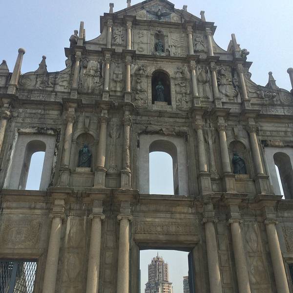 1602年奠基,1637年全部竣工,而教堂前一段长石阶则于稍后完成。这间教堂与火结下不解之缘,从其雏型起始,至现时仅存的前壁牌坊,先后经历三次大火,屡焚屡建,是一所活生生的历史见 。