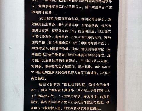 杨闇公随时在提醒我们当初的祖国是怎样的,当初为了祖国革命献身的人是多么的勇敢