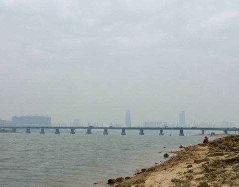 南昌的赣江市民公园是休闲的好去处,也叫傩文化广场,江边的步行道边还有很多诗词的雕刻。江边有很多人钓鱼,赣江中的水很清,在流经城市的河流中这是我见过的最清的河水。
