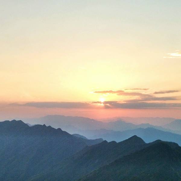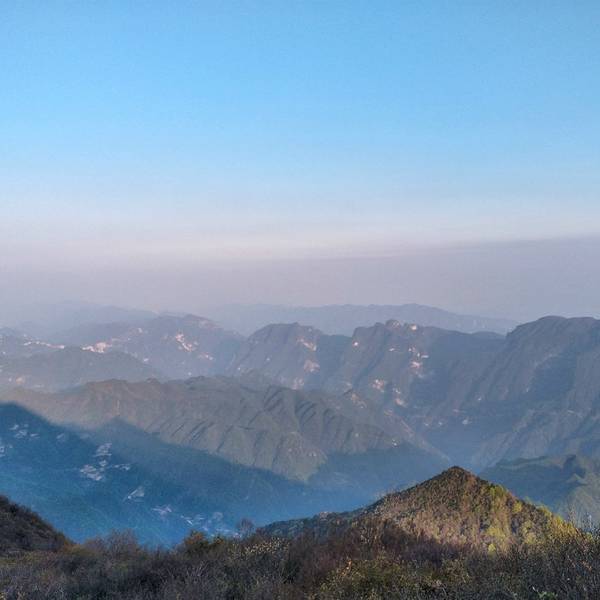负重约四小时达到山顶。山顶有平台可搭帐篷,不远处就有厕所,风较大。如果一热上山不建议将帐篷搭到顶上。在山腰处有一个客栈(暂且这么称呼,山里头的条件大家可想而知)——太白草堂。距离山顶1小时路程,且有一大块平地,适应搭帐篷。人数过多也建议在此,山顶平地较少。日落在5:30-5:45钟左右,天气较好。日出在6:00左右,看完日出后进行修正,吃早餐,如果天气好,在7点钟能够在山顶看到长江。下山时间为两个半小时左右。