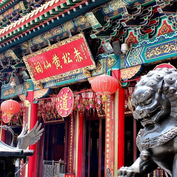 香火旺盛的庙宇,建筑古典华丽,黄大仙相传“有求必应”,还可求签占卜。