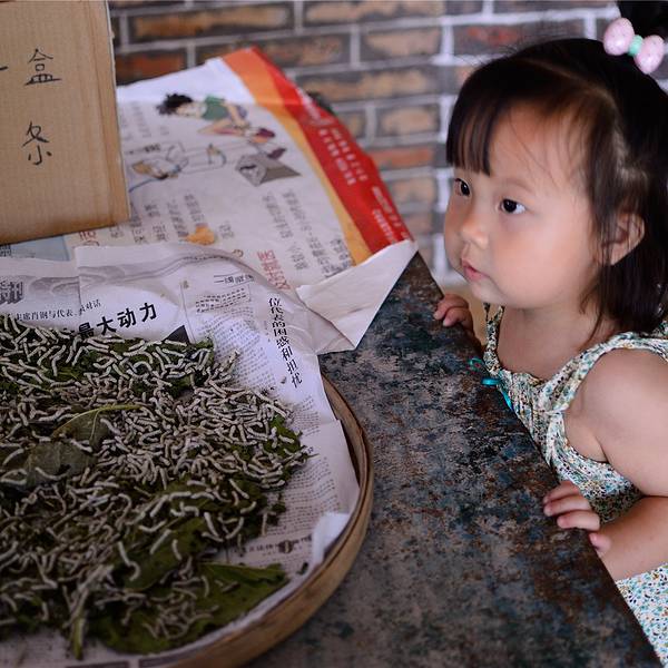 除了桑树,园区里还有菜园,种了很多其它的果树,比如小番茄,除了桑葚时节其他时间也可以体验农场乐趣。有一个蚕科普馆,很多瓶子里存着蚕各个时期的标本,我们可以看到它如何是从一个黑芝麻点点的蚕种变成一个蚕蛹的,还可以近距离观察蚕吃桑叶,是个带宝贝科普的好地方。