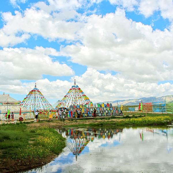 实用 岸边有亭子和小桥,天气非常晴朗,天很蓝,云很白,再加上风平浪静,风景全倒映在水中,还蛮漂亮的在从西宁前往青海湖的路上先经过日月山,然后就是倒淌河。“天下河水皆向东,唯有此溪向西流”说的就是倒淌河。据说是文成公主在赴藏途中,因思念家乡泪流成河,于是有了倒淌河。到倒淌河没有班车,一般都要包车...在从西宁前往青海湖的路上先经过日月山,然后就是倒淌河。“天下河水皆向东,唯有此溪向西流”说的就是倒淌河。据说是文成公主在赴藏途中,因思念家乡泪流成河,于是有了倒淌河。到倒淌河没有班车,一般都要包车或者拼车前往。景区门票40元。进门是木板路,上面挂满经幡。再进去就看见了倒淌河,我们去的那天,河水非常平静,我们站在岸边想看看是不是向西流,可是那河水一动不动,很难看出流动的痕迹,我们只好放弃了。景区内除了倒淌河,都是人造景点,主要是以体现唐蕃文化为主。景区有一洼洼的河水,岸边有亭子和小桥,天气非常晴朗,天很蓝,云很白,再加上风平浪静,风景全倒映在水中,还蛮漂亮的。景区内有个帐篷,里面有各式民族服装,免费穿。我们也试了几件,最终换上喜欢的藏族服装,然后在景区内逛。反正景区里大家穿着民族服装,就当回少数民族吧。景区内有一些藏族的摆设,推车,华盖等。有的帐篷是藏族家庭摆设,可以体验一下藏族人的生活。景区内还白耗牛和马,游客是可以免费骑的,都包含在门票内的。我们也不能免俗的骑马拍照。 展开