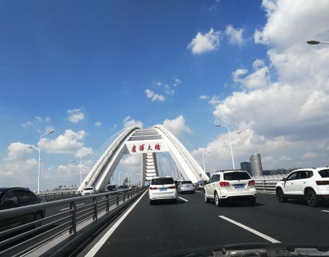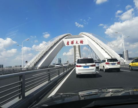 卢浦大桥,是浦东浦西之间的一座大桥,也是一条通道。每次在桥上看着中国馆,都会有一种自豪感,真的[愉快],自然而然的。当然,尽量别贴着(从浦东往浦西方向的)右面开车,好多都会放慢车速看风景滴啦[偷笑][调皮]