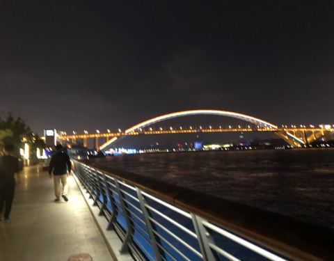 好久不来滨江了,先前看卢浦大桥就是换各种颜色,现在是彩虹哈,老公说是rainbow bridge。 彩虹还会渐渐消失,然后再出现,真的好美!散步也觉得很有趣~