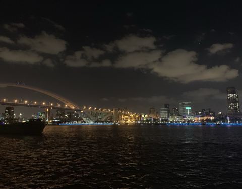 好久不来滨江了,先前看卢浦大桥就是换各种颜色,现在是彩虹哈,老公说是rainbow bridge