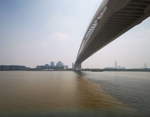 这座桥还是非常的宏伟壮观的很快黄浦江的两岸嫉妒的缓解了两岸的交通,平时上面的车子还是车流很多的。在滨江大道上,能够欣赏到这美丽的大桥全景。
