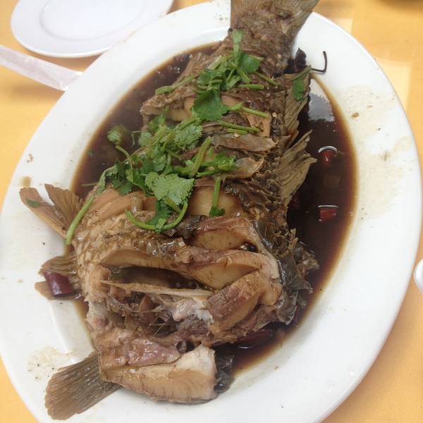 来黄河都说要吃黄河鲤鱼,3个人去吃,点菜时不停推荐特色菜,我们想点一个红烧黄河鲤鱼,问一条鱼多重,回答说两斤多,然后极力怂恿我们点三四个菜。然后我老公去看称鱼,鱼是3.4斤,我赶快说取消一个青菜,柜台还说点了取消不了。我说才3分钟又不是电脑下单,有什么取消不了的。