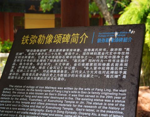 玄中寺不仅风景优美,还有许多文化遗迹,其中,大雄宝殿前的两块古碑就非常有名,有一块是甘露无碍义坛碑,你在了唐朝修建义坛的盛事,那一块是铁弥勒像颂碑,上面的碑刻文字非常优美,颇具文学,书法价值,连欧...