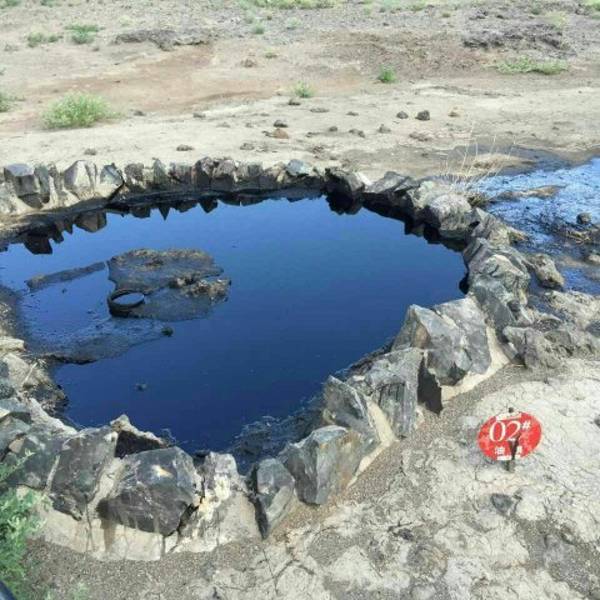 黑油山是油田重要油苗露头的地方,因原油长年外溢结成一群沥青丘,油质为珍贵低凝油