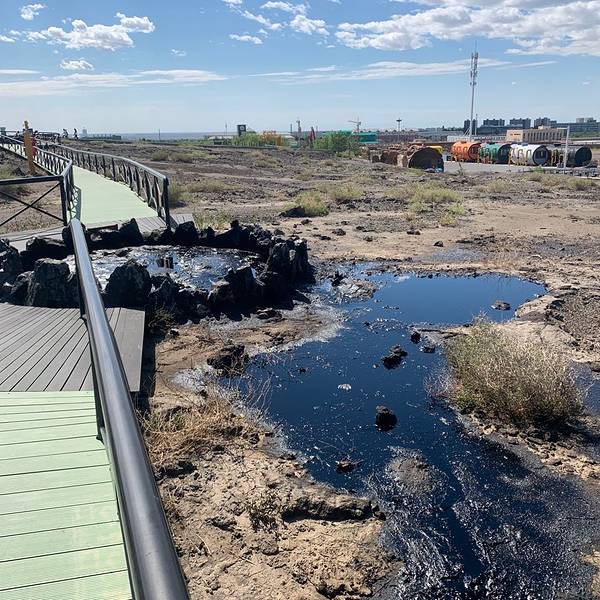 黑油山是这里第一次发现石油的地方。地方不大,但是现在还有地方在冒油泡,就在城市旁边,值得去看一下