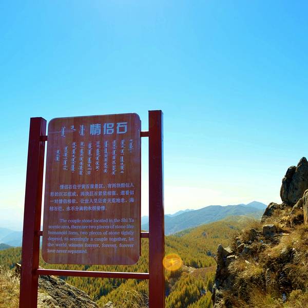 苏木山属阴山之尾,长达35公里,宽约25公里,平均海拔为1800米,沿蛇形山径攀援而行,直上景致迷人的最高点----望天涯。举目四望,但见群山叠翠,雾色缥缈,犹如一幅浓淡相宜的壁画垂挂天际。轻懈送来浓浓花香,山溪泉水叮咚作响,使人如入仙境,心旷神怡,人间一切烦情愁绪荡然无存。苏木山之雄奇,首先在天那怪石嶙峋,形态各异的山岩巨石。登临绝顶,纵眼四望,细究山形,有的酷似罗汉张臂喜迎宾;有的如同金龟伸头探碧海;有的宛如擎天柱,浑圆挺拔入云霄。面对那形象逼真的“情人石”,不禁引发“头靠身依情切切,恩爱情第度千年”的幽幽暇思。苏木山之幽深,幽在山水林木,纷繁花草,飞禽走兽相依相附,浑然一体,隔世而立。整个风景区以人工栽植的7.5万亩松林为主色调,花松翠杉尽染群山,自成一景,以其坚毅不拔之态,蔽日遮阴之神,足显人类改造自然的伟力。景区内到处可见山泉喷涌,或突泄于蓝天,或隐没于花丛,潺潺涓涓,如诉如泣。苏木山旅游区是人的创造力与自然美的杰作。然而,多年来它地处偏僻,如锁在深闺的佳丽难展芳容。是改革开放的强劲东风,终于使苏木山袒露出多姿多彩多情的风采。