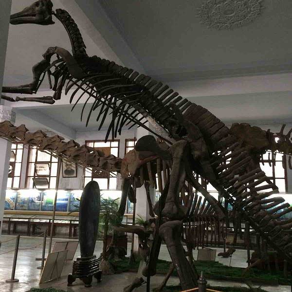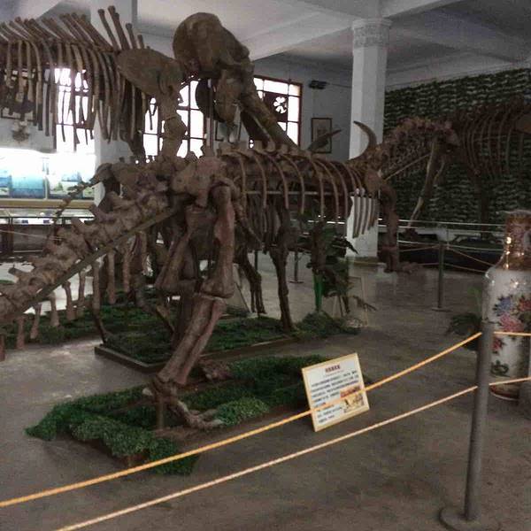 成都理工学院博物馆是一座以地学为主的自然博物馆,至今已有三十多年历史。分设有恐龙、古生物、矿物、岩石、观赏石及宝石宝玉等10个展室,全馆面积2600平方米,馆藏5万余件各类标本藏品,每年接待观众达6万余人次,是中国西部最大的地学类自然博物馆。从外型看根本就像一座小教室。 进到里面,就简简单单的一圈布局,中间几个恐龙化石骨架,亚洲象骨架。周边一些化石或纺织品。 很小,很简单
