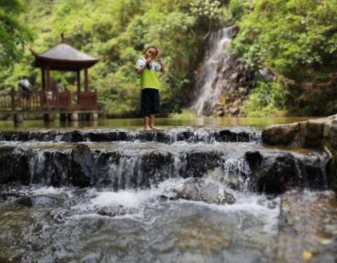 山谷幽幽,流水潺潺,山清水秀。停车方便,里面吃的也不算贵,青山绿水中,时不时有个瀑布点缀其间,人不多,特别清净,刚进大门还有些玩的小项目。
