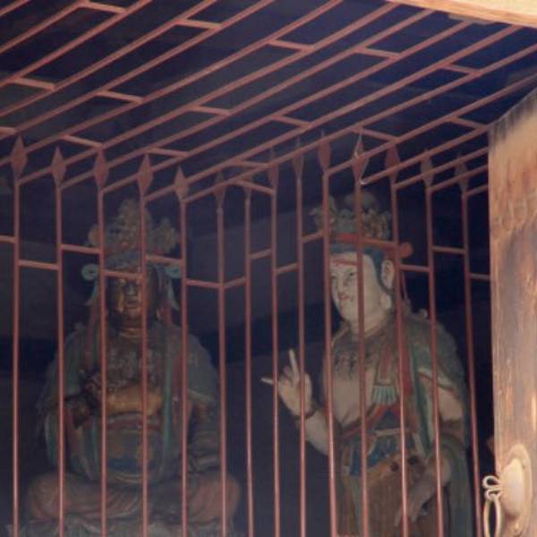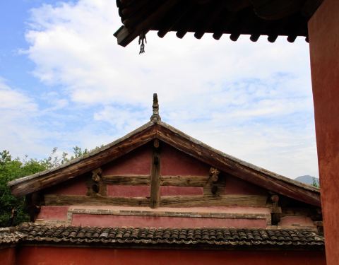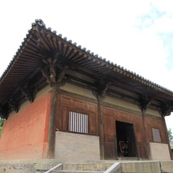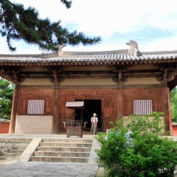 南禅寺,位于五台县阳白乡李家村,无论是建筑,还是塑像、砖雕,都是稀世国宝。南禅寺内有我国现存较古老的木结构建筑——大佛殿。是五台山古建筑中较为古老的建筑。根据大殿横梁上题记可以确定,大殿重建于唐德宗建中三年(公元782年),距今已有一千多年的历史。 大佛殿是南禅寺的主体建筑,共用十二根檐柱支撑着庞大的殿顶,大殿的墙身并不负重,只起间隔内外和防御风雨侵袭的作用。四周檐柱柱头微微内倾,四个角柱稍高,使得层层伸出的斗拱翘起,屋脊两端装饰着鸱吻。大殿既稳固又俏丽,结构简练,具有典型的中唐时期大型木结构建筑风格。 在大殿内还可以欣赏到唐代的塑像。大殿中供奉着释迦牟尼佛像,两旁是文殊、普贤二位菩萨。无论是骑狮子的文殊菩萨或乘大象的普贤菩萨,还是肃立的阿难和迦叶,个个神态自若,表情逼真,塑像的风格与敦煌莫高窟彩塑如出一辙。 在佛坛的四周,还嵌有唐代砖雕几十幅,都是唐代砖面浮雕艺术杰作。南禅寺内还有两块石雕狮子和石塔,也是唐代的遗物。一块是卧狮,另一块是“二狮相对”的形态;石塔高约半米,共分五层,一层四周刻满佛教故事,四角各有一座小塔,其余各层都雕有佛像。