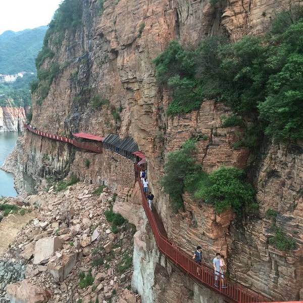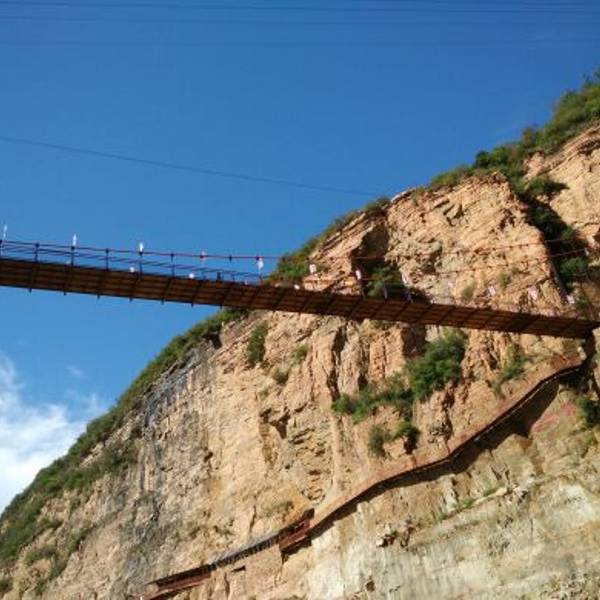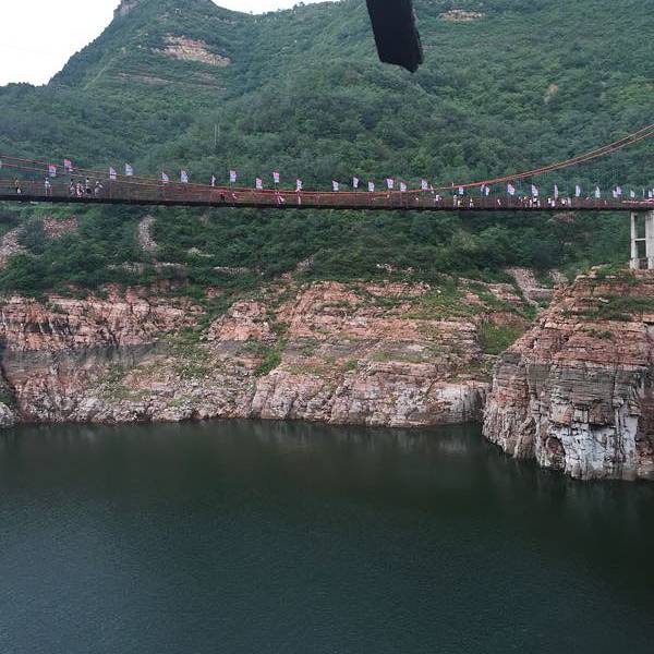 我们的游玩线路是停车场停车10元―>步行到游船码头(门票+船票120元)―>思幽谷码头―>观光电梯(10元)―>玻璃栈道(10元)―>回龙谷―>龙壁岩瀑布―>上山索道(40元)―>京娘秘境―>云中寺―>宋祖峰观景平台―>花果山赏猴―>赤壁栈道玻璃栈道(10元)(有破裂配音)―>山地小火车(10元)―>情诗廊―>重力过山车(60元)(需要排队等待时间较长,比较惊险刺激,最好不要手拿手机,以免被甩出)―>京娘祠―>花廊―>观光下山车(30元)―>鹊桥外停车点(或选高空飞索―>景区外大坝)由于下车后直接到了景区外,鹊桥没有走,和工作人员说了一下,又进去走了一下鹊桥。在鹊桥可以欣赏到附近的空中吊威亚,胆大的也可以参与,优惠价每人60双人99.