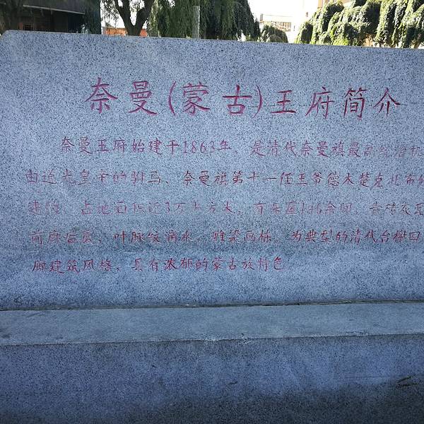 王府很是气派连门票都不要就是大气。王爷的花园。左右还有厢房第5天准备回家,上午去了奈曼王府,就在旗里所以不用着急9点才开门。王府很是气派连门票都不要就是大气。王府特点总结一下“住宅办公一体化,卫队家眷前后院,办公办私全在这,王爷就是牛”!