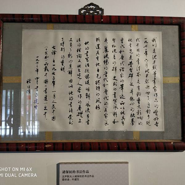 很小的房子由于上面还有住家所以只开放一楼的2间陈列室,没有沈先生的家具用品,只有一些生平介绍和...只有周二才开发一天哦,很小的房子由于上面还有住家所以只开放一楼的2间陈列室,没有沈先生的家具用品,只有一些生平介绍和书法真迹