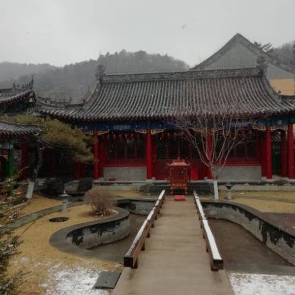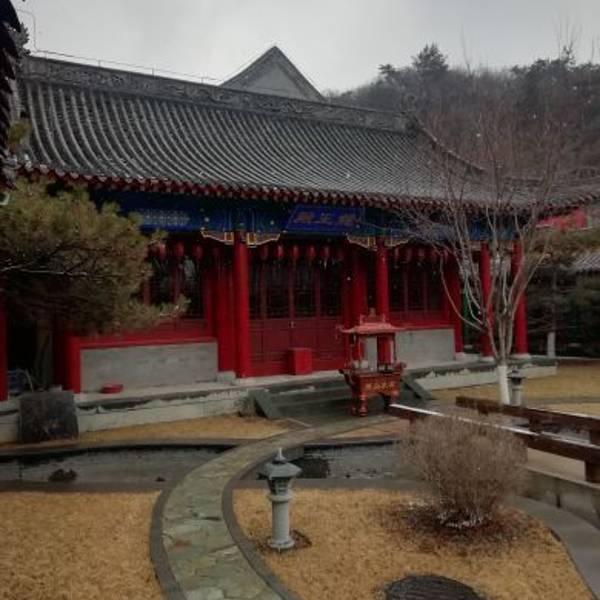 小巧玲珑,庙宇背靠山峰,座北朝南。旁边是太子河。上风上水,风换光旋丽,景色俏丽。空气清新,景色清幽。