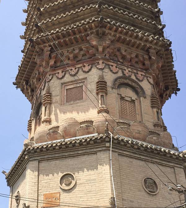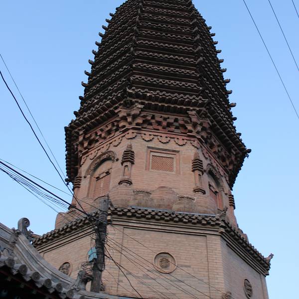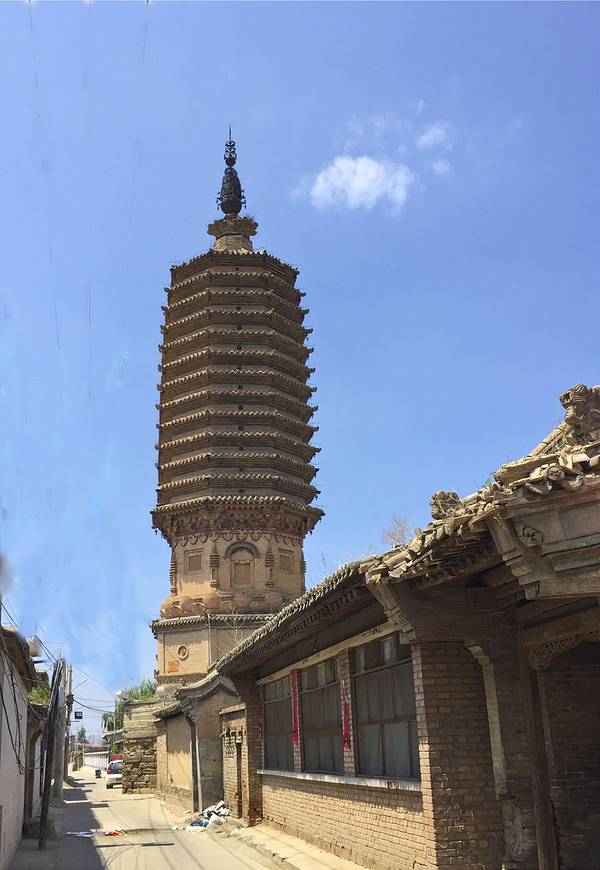 塔建于辽代,塔院建于清代在蔚州府后面的塔巷,就可以走到塔下面了。