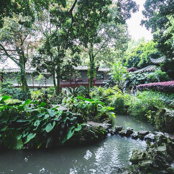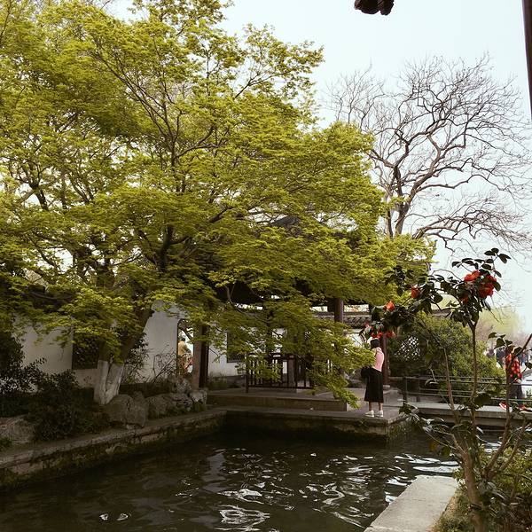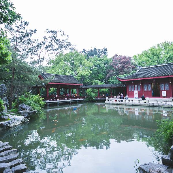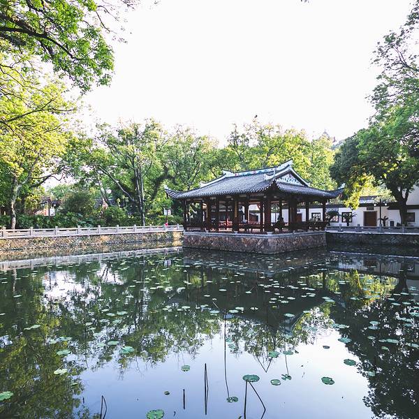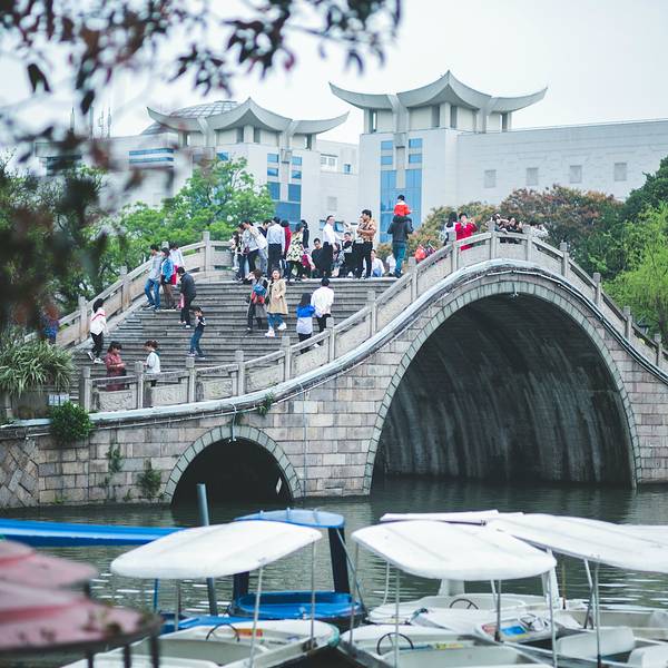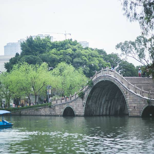 九曲桥上永远挤满游人。穿旗袍拍照的妇人,学步的孩童,卖棉花糖的小贩,组成一幅流动的市井图。桥栏上的石狮子被摸得油亮,缺了角的,掉了牙的,倒比完整的更显生动。站在桥心望去,游船在湖面划出交错的水痕,像一张被揉皱的蓝纸。
