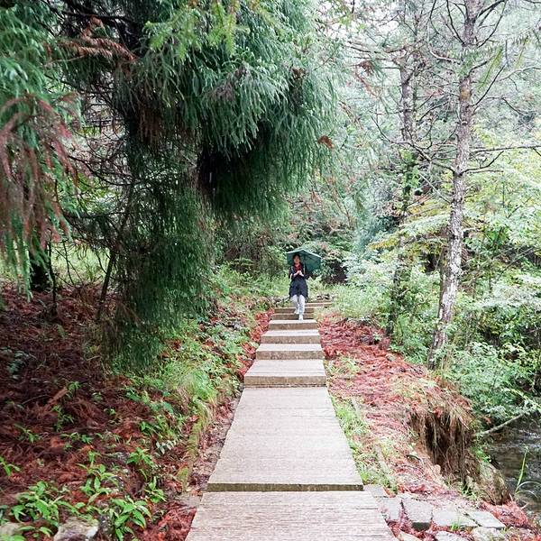 第三天:7点起床→7:15免费早餐→7:30坐电瓶车(10元)→黄茅尖入口登山→下山按路标→小天池方向→瓯江源景区大门→进沟遇三叉路向下直走→峭壁平台四叉路(走左面向上道,遇岔路先右探再左行)→转回四叉路走右面向上道→沟口叉路左拐→13:30下山→15:00到龙泉车站→15:20快客回丽水(2.5小时)