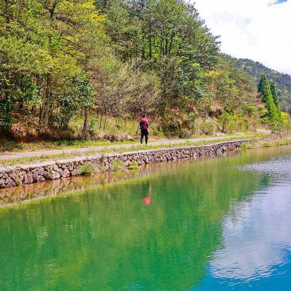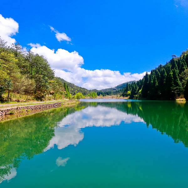 实用 行走在天然的氧吧中,鼻尖嗅到的皆是青草与泥土的芬芳,虽然路途略显漫长,却不觉疲惫。幽静而空灵拖着疲惫的身躯从黄茅尖返回酒店(我觉得唯有“拖”字能形容当时的场景),强撑着扒了两口早饭入肚,便一头扎进被窝梦回周公去也。一口气睡到晌午,当拉开窗帘温暖的阳光洒在我的脸上,当看到同伴已点好了满桌可...拖着疲惫的身躯从黄茅尖返回酒店(我觉得唯有“拖”字能形容当时的场景),强撑着扒了两口早饭入肚,便一头扎进被窝梦回周公去也。一口气睡到晌午,当拉开窗帘温暖的阳光洒在我的脸上,当看到同伴已点好了满桌可口的饭菜,我才感觉自己又活过来了。午饭过后,我们沿着清溪烟波一路回溯,去寻觅瓯江初始的地方——瓯江源。最先映入眼帘的一处高山湖泊,此地名为小天池。只见一片碧水微澜倒映着两岸状似宝塔的冷杉林,朵朵白云在湛蓝的天穹上悠悠荡荡,间或几只鸟儿滑翔而过。天池澄碧,水落红莲,云自无心水自闲。俯瞰小天池,好似点缀在苍茫群山中的一颗蓝宝石。待到夏季七八月,这里又是另一片光景。那时正是高山草甸水草肥美的季节,当凉爽的山风吹拂而过,应该会有几分“天似穹庐,笼盖四野。天苍苍,野茫茫,风吹草低见牛羊”的味道吧。沿着山间小径继续向前,路上除了几个同伴看不到其他游客,颇有静谧安闲的感觉。只是一路罕有树荫遮挡,后悔没带上一把遮阳伞。歌于途,憩于树,走走停停,拍拍歇歇,忽然好想长歌一曲,听自己的回音在空寂无人的山野间久久回荡。穿过高高低低的芦苇,穿过此起彼伏的茅草,看天地日月恒静无言,看青山绿水亘古不变。行走在天然的氧吧中,鼻尖嗅到的皆是青草与泥土的芬芳,虽然路途略显漫长,却不觉疲惫。又穿过一片郁郁葱葱的杉树林,阳光伴清风穿林打叶而过,洒下的斑驳点点里,一半是影,一半是光。而我们也抵达了此行的目的地—瓯江源。绵延千里的瓯江始于此地,从涓涓细流一路汇聚成波涛汹涌的浙江第二大河直入海洋,形成自己的瓯江水系。一路奔行,一路流淌,雁荡山、楠溪江点缀其中,缙云仙都、百丈漈-飞云湖伴随其侧,流淌出好一片浙南风月。“卧闻海潮至,起视江月斜。借问同舟客,何时到永嘉。”从古至今文风鼎盛千古风流的永嘉江便是它。山间小溪潺潺而流