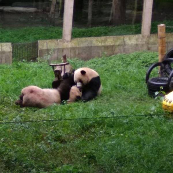 不过有时候也是弱肉强食,无可避免的食物链!这熊孩子,老大不小了吧,为了吃的,一直在卖萌转圈圈是他的必杀技!我还不知道熊爱吃水果的,虽然说不可投食🐼,但是看它那饿饿的样子,蛮可怜的!忍不住想给滚滚们配内心独白,哈哈哈哈........