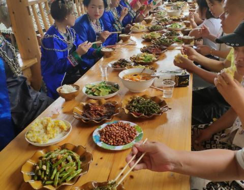 晚寨距离嵩蒿镇不远。在榕江汽车站乘往嵩蒿镇的中巴车,1个多小时1班,约50公里路,车资7元。到嵩蒿镇后,一般需要步行前往晚寨,逢到集市时可以在镇上打听有没有去晚寨的农用车。